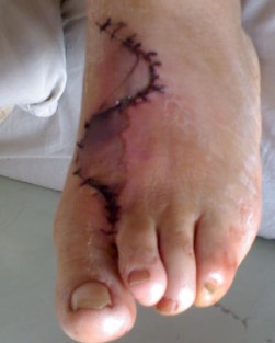 右手第三掌指关节缺损行第二跖趾关节游离移植术