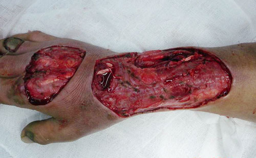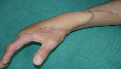 前臂热压伤致伸肌群和多处软组织大面积缺损