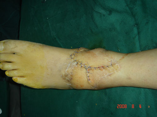 左踝部离断再植加股前外则皮瓣移植修复术后