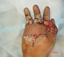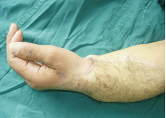 手掌背部皮瓣桥接再植术后